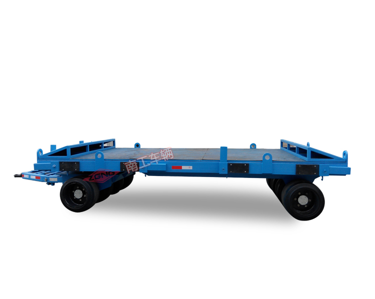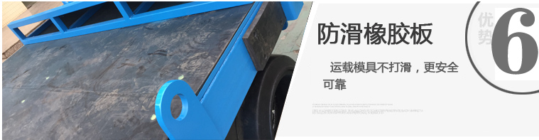 本星空体育登录入口(官方)网站/网页版登陆入口适用于工厂、码头、仓库、物流中心等物流周转运输,特别适用于模具周转,星空体育登录入口(官方)网站/网页版登陆入口承重35吨,平台铺20MM厚橡胶板。拖车本身无动力,可用5吨叉车、50KN牵引车牵引。
